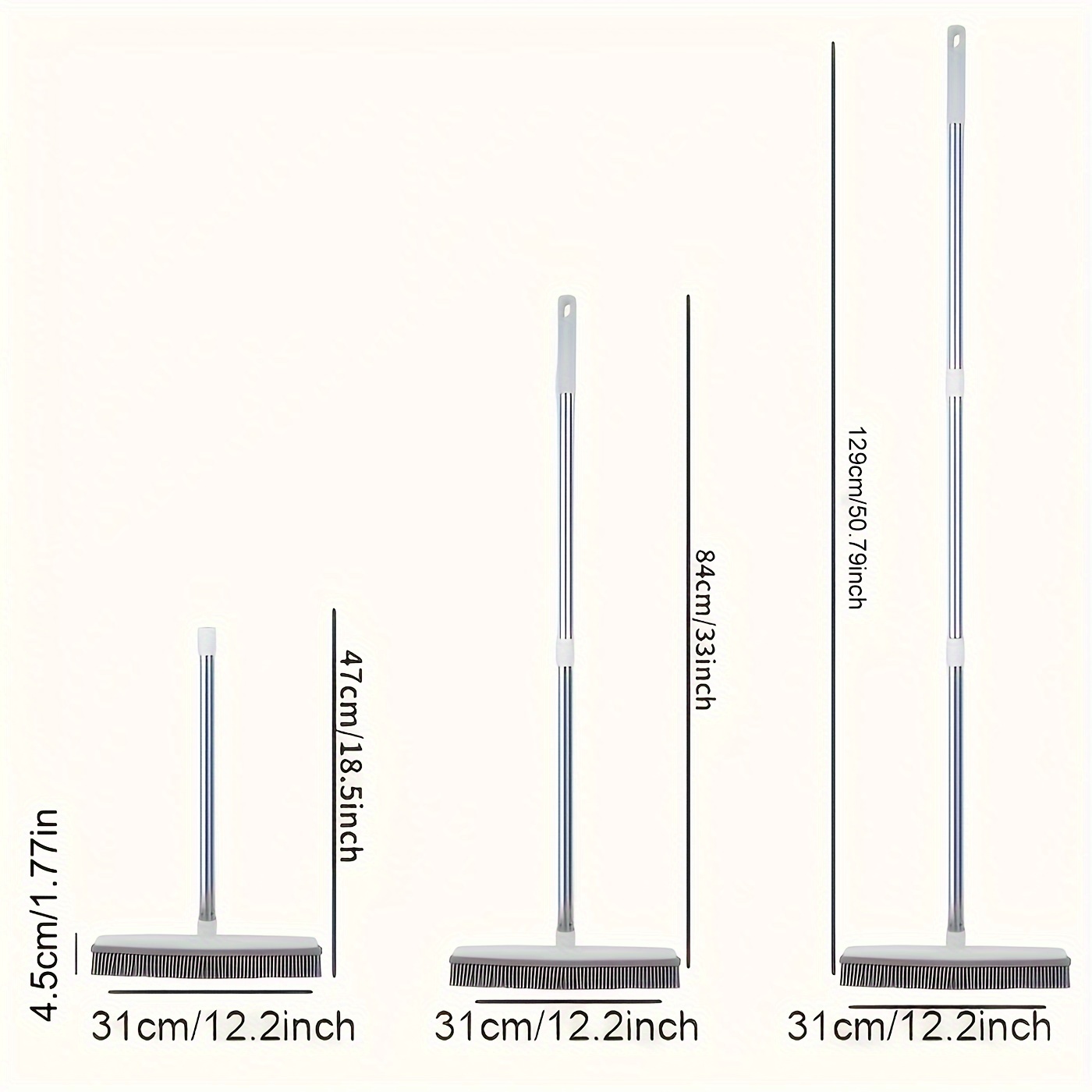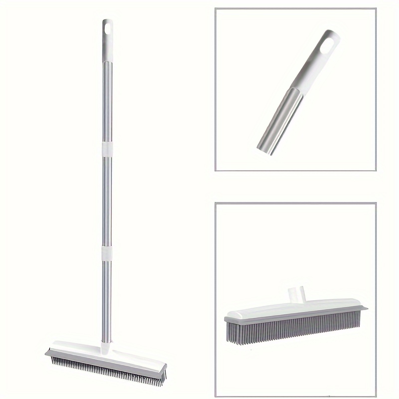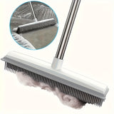 Pet Hair Removal Broom with Rubber Brush & Squeegee - Carpet Groomer for Floor Cleaning