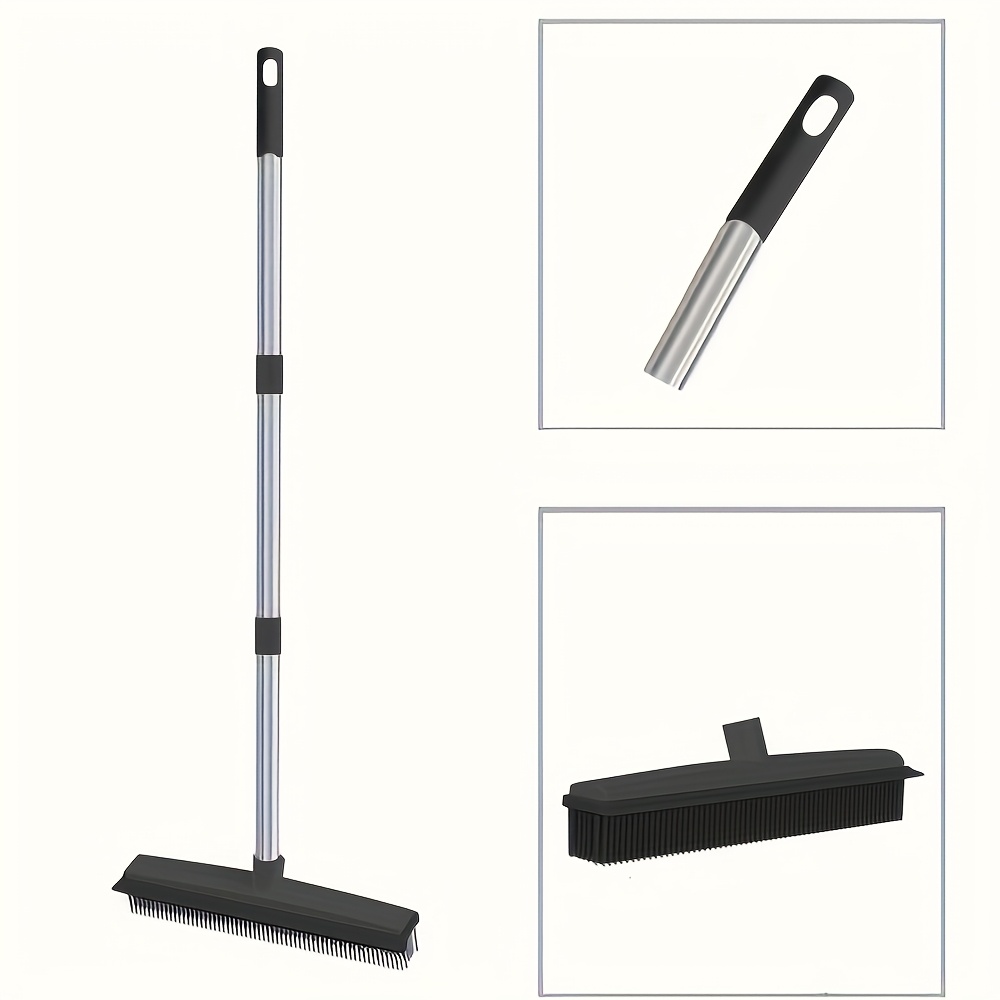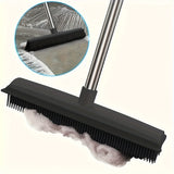 2-in-1 Heavy Duty Rubber Broom with Anti-Slip Handle - Multi-Surface Floor Cleaner for Carpets