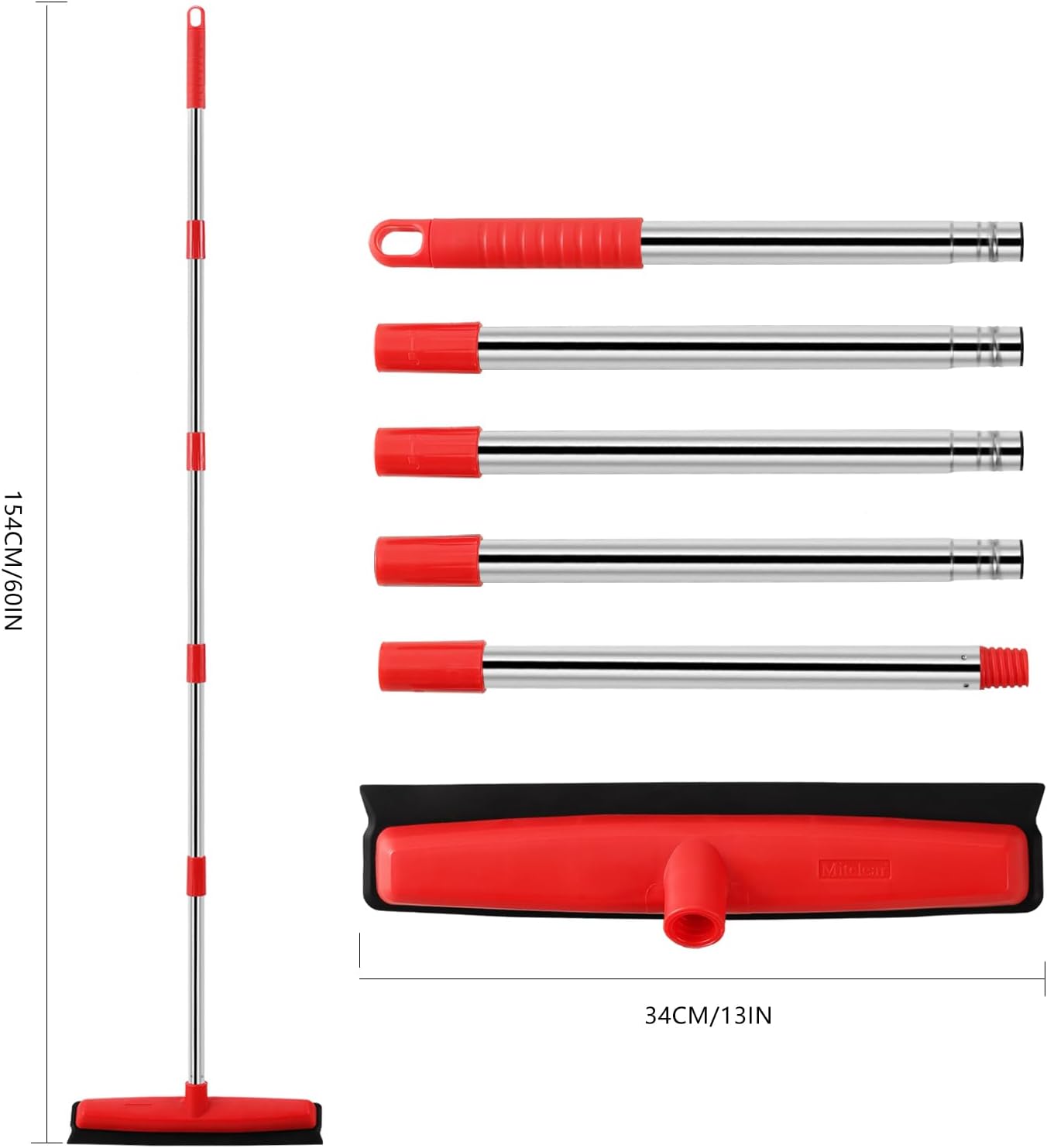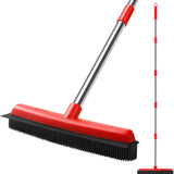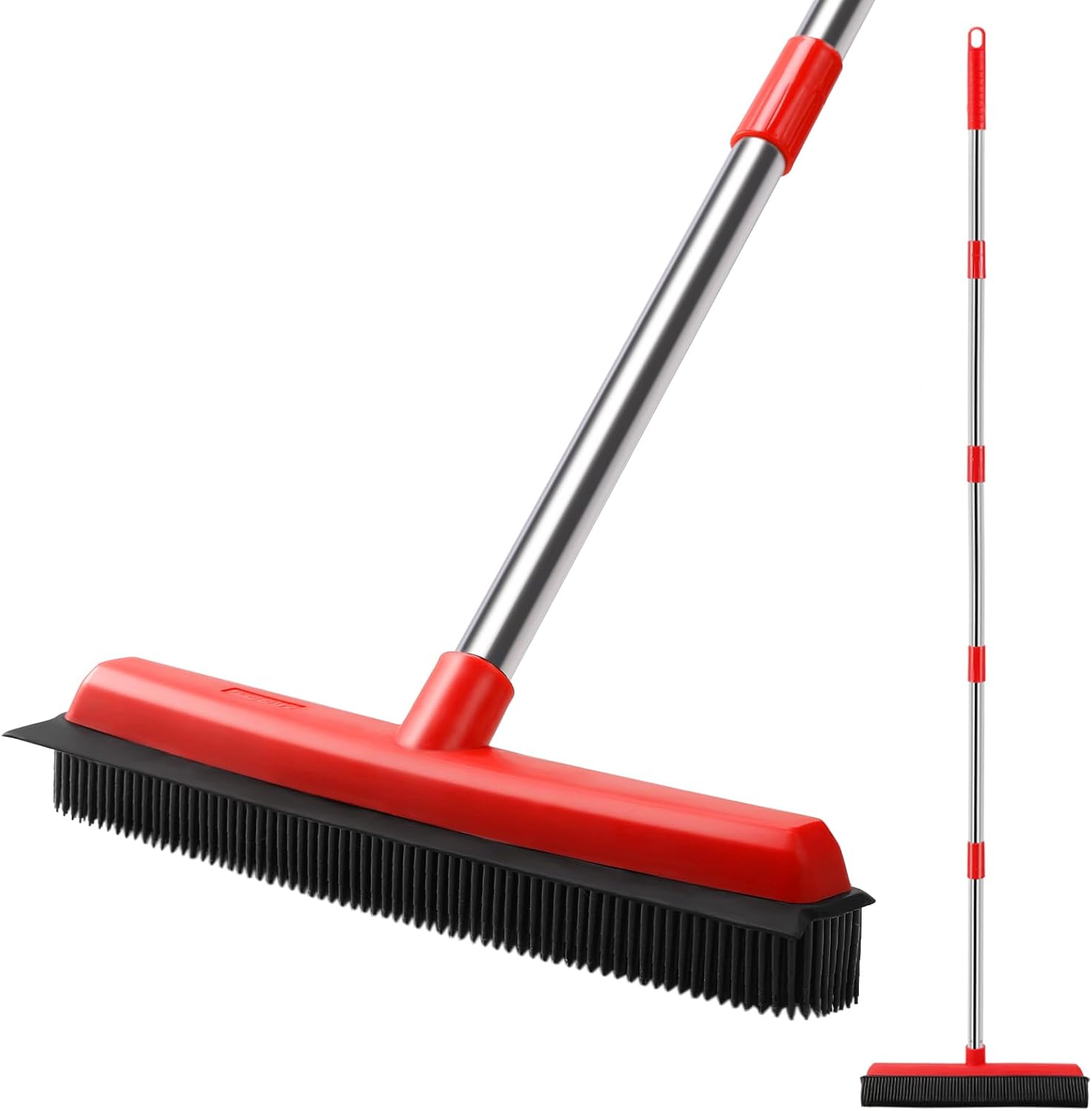 Rubber Broom with Long Handle(60IN), Indoor Floor Brush with Built in Squeegee(13IN)
